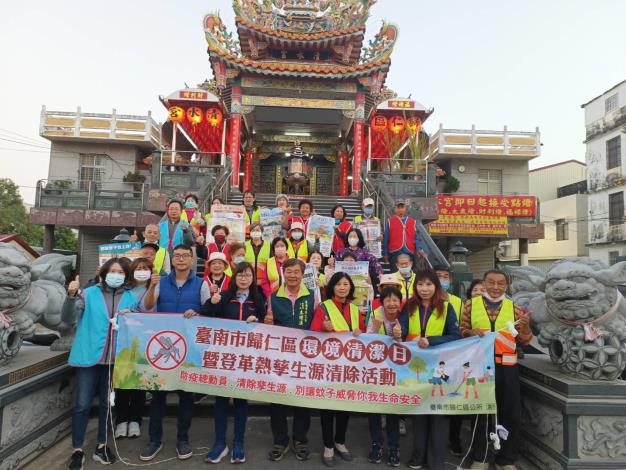 本日(12月13日)環境清潔日在南保南興里清水宮前(南興里)辦理,由歸仁區林主任秘書、清潔隊長黃旭群、歸仁區及仁德區衛生所、本所同仁及 #南興里 #朱璟漢里長 帶領的志工團隊進行清淨家園及登革熱防治工作。