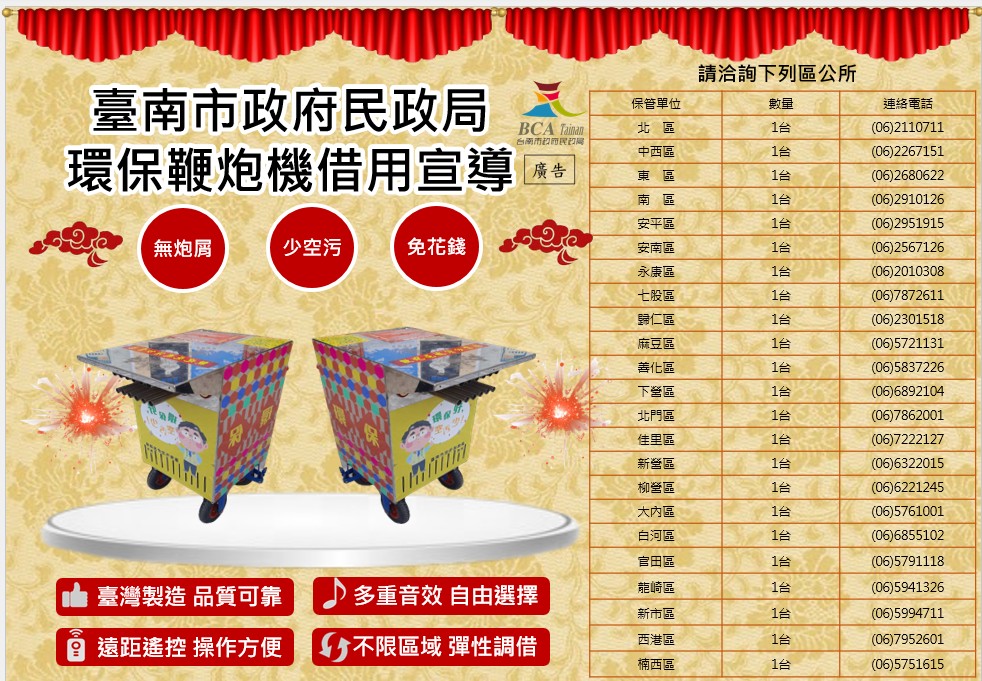 一、依據內政部115年3月30日台內宗字第1150560806號函辦理。 二、為降低焚燒香品、紙錢及燃放爆竹煙火對環境之負面影響,請協助推廣下列作法: (一)香品部分:推廣適量用香、使用環保香爐,並鼓勵以電子香、心香或花香等方式替代,以降低空氣品質負荷。 (二)紙錢部分:推動集中燒 ...更多