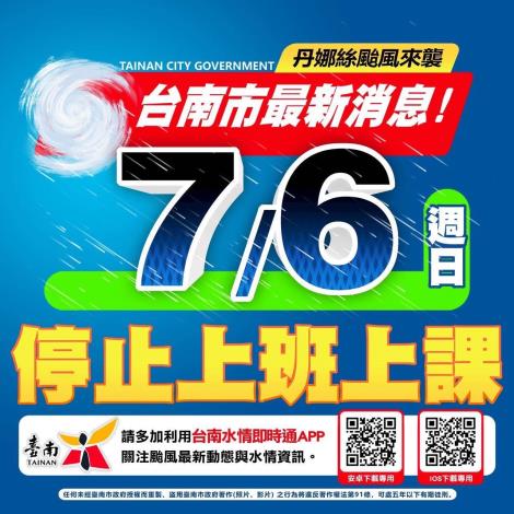丹娜絲颱風資訊 台南市明(6日)停止上班上課