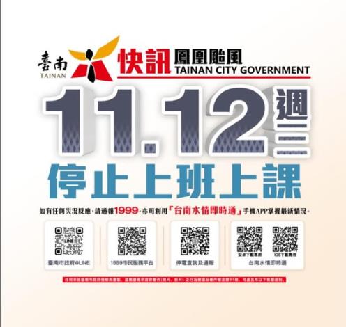 鳳凰颱風資訊 台南市明(12日)停止上班上課